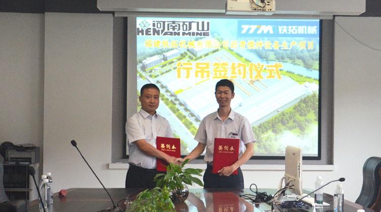 9月16日下午,福建鐵拓機(jī)械有限公司智能化新工廠建設(shè)首個智能化設(shè)備采購項(xiàng)目落定。鐵拓機(jī)械與河南省礦山起重機(jī)有限公司牽手,就鐵拓機(jī)械瀝青攪拌設(shè)備新工廠行吊采購項(xiàng)目正式簽約,采購使用歐洲標(biāo)準(zhǔn)的80臺不同型號的起重機(jī),項(xiàng)目金額超2000萬元。